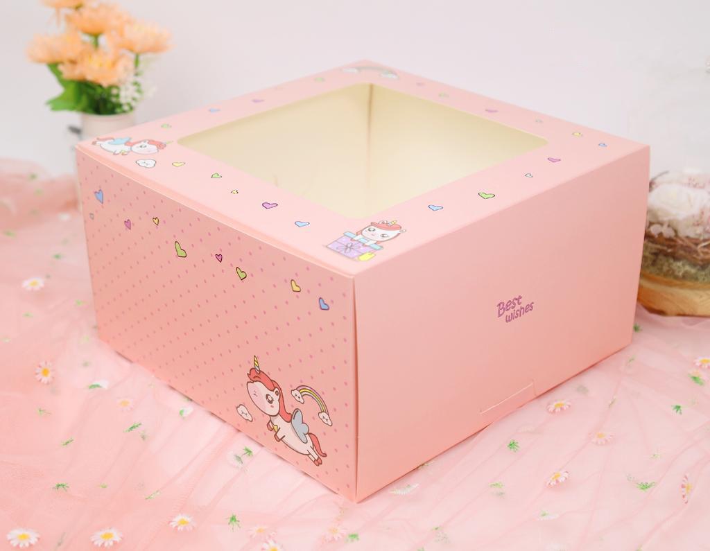 กล่องเค้ก 3 ปอนด์ ลายเบบี้ยูนิคอร์น พิงค์ ทรงสูง
