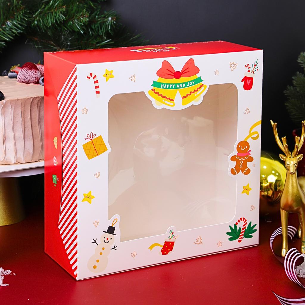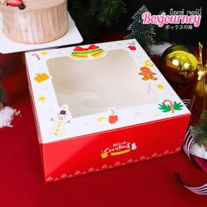📦 กล่องเค้ก 3 ปอนด์ ลาย Hello Christmas 26.5 x 26.5 x 10.5 ซม. (แพ็ค 20 ใบ) – กล่องเค้กดีไซน์น่ารัก