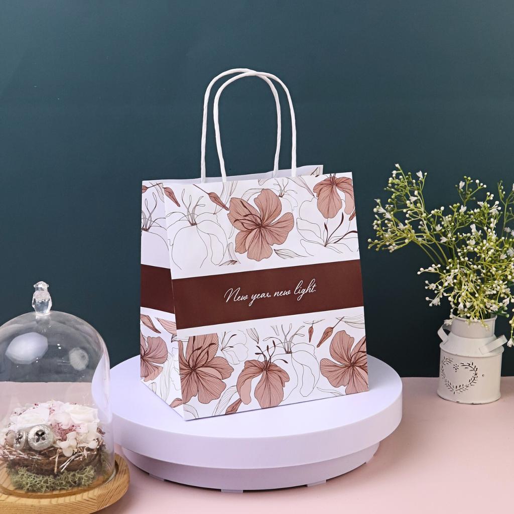 🌿 ถุงกระดาษหูเกลียว พิมพ์ลาย ลาย SnowPop 19x13x21 ซม.