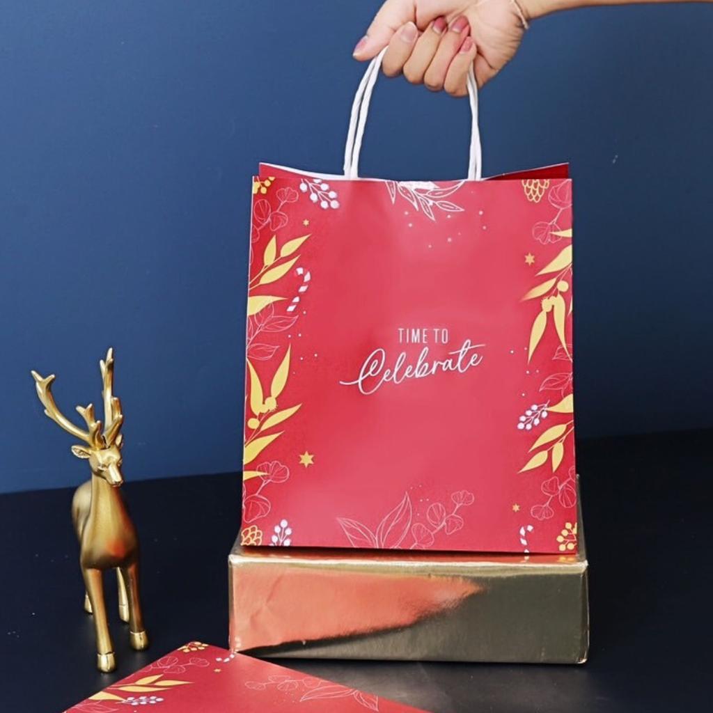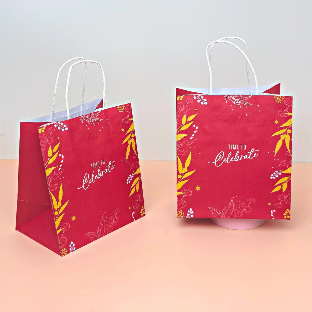 ถุงกระดาษหูเกลียว ลาย Time to celebrate 19x13x21 ซม. จำนวน 25 ชิ้น/แพ็ค ผลิตจากกระดาษฟู้ดเกรด สะอาด ปลอดภัย